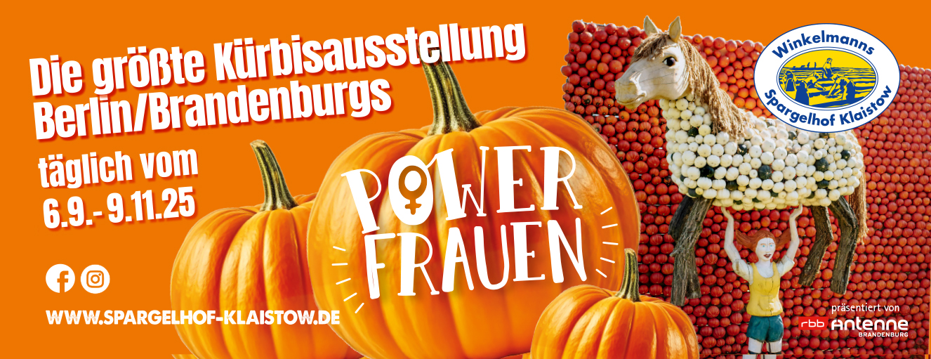 Am Samstag, den 6. September 2025, öffnete die größte Kürbisausstellung Berlin/Brandenburgs auf dem Spargel- und Erlebnishof Klaistow. Unter dem Motto „Powerfrauen“ werden bekannte Persönlichkeiten wie Pippi Langstrumpf, Bertha Benz, Kleopatra oder Frida Kahlo als überlebensgroße Figuren dargestellt – geschmückt mit tausenden Kürbissen unterschiedlichster Sorten.