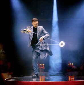 In dieser Bar, irgendwo zwischen Traum und Wirklichkeit, treffen sie alle aufeinander: die Leisen und die Lauten, die Suchenden, die Spielenden, die Liebenden. Jeder bringt eine Geschichte mit, eine Haltung, ein Geheimnis. Und mit jedem Auftritt entfaltet sich mehr von dieser besonderen Nacht. Mario Español erklimmt mit tänzerischer Kraft den Chinesischen Mast und zieht die Aufmerksamkeit wie ein Magnet an; ein Solitär, der mit jeder Bewegung seine Geschichte schreibt. In enger Verbundenheit begegnen sich Ma Mao, ein Duo, das in der Luft verschmilzt und mit seiner Partnerakrobatik die verletzliche Seite der Nähe erfahrbar macht.