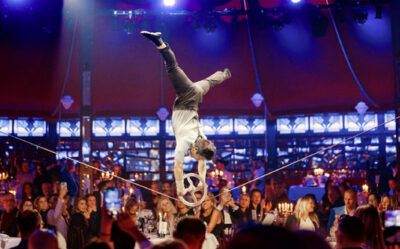 In dieser Bar, irgendwo zwischen Traum und Wirklichkeit, treffen sie alle aufeinander: die Leisen und die Lauten, die Suchenden, die Spielenden, die Liebenden. Jeder bringt eine Geschichte mit, eine Haltung, ein Geheimnis. Und mit jedem Auftritt entfaltet sich mehr von dieser besonderen Nacht. Mario Español erklimmt mit tänzerischer Kraft den Chinesischen Mast und zieht die Aufmerksamkeit wie ein Magnet an; ein Solitär, der mit jeder Bewegung seine Geschichte schreibt. In enger Verbundenheit begegnen sich Ma Mao, ein Duo, das in der Luft verschmilzt und mit seiner Partnerakrobatik die verletzliche Seite der Nähe erfahrbar macht.
